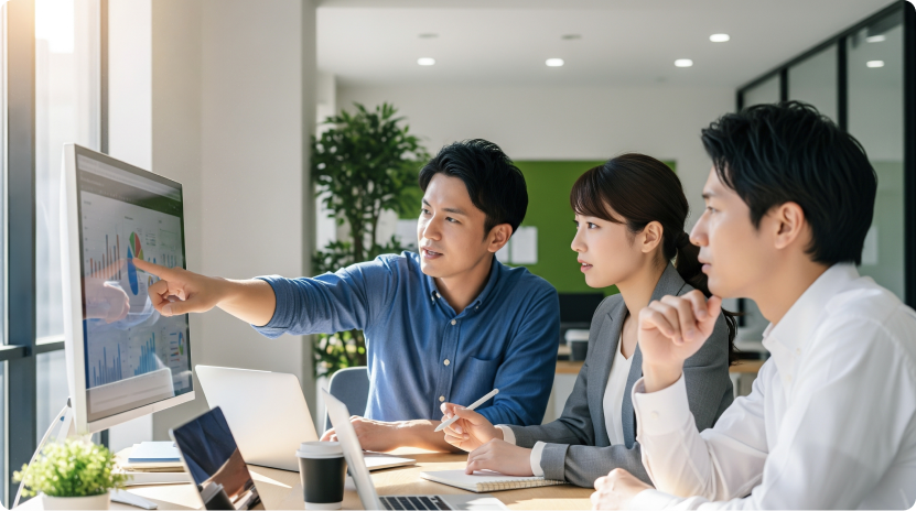 課題抽出から戦略立案、実行支援、改善提案までを一貫してサポート。